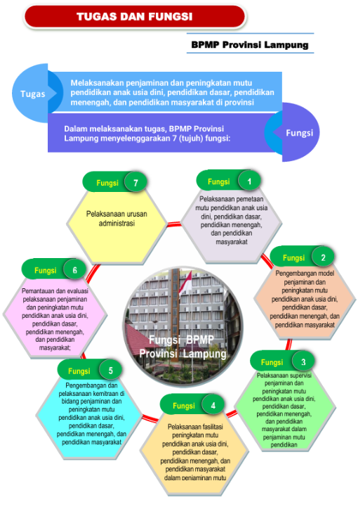 BPMP mempunyai tugas melaksanakan penjaminan dan peningkatan mutu pendidikan anak usia dini, pendidikan dasar, pendidikan menengah, dan pendidikan masyarakat di provinsi